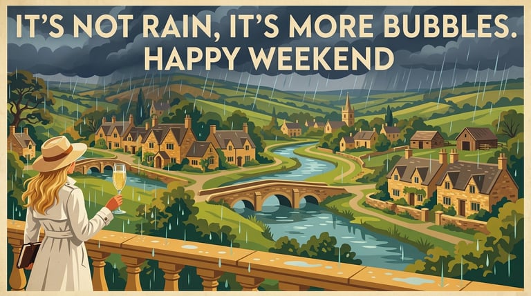 So as I metaphorically stand in the rain raising a glass of champagne, I have to remind myself that I always say: "It's not rain, it's just more bubbles!" In reality, I am inside, snuggled up by the Aga, the garden can wait for another day...
