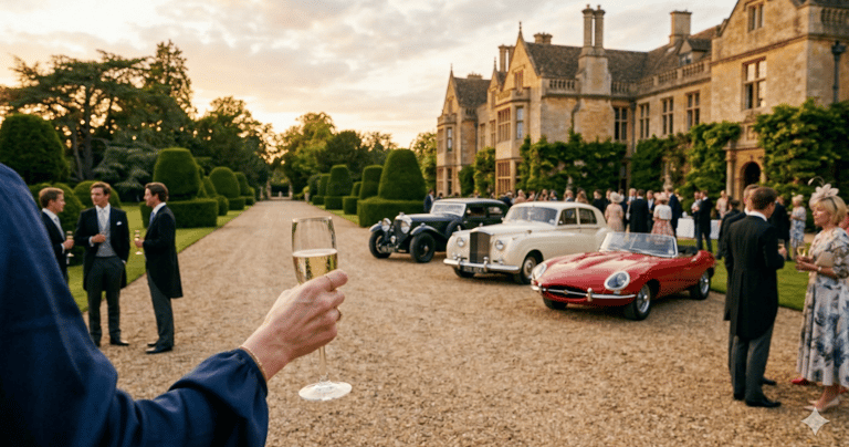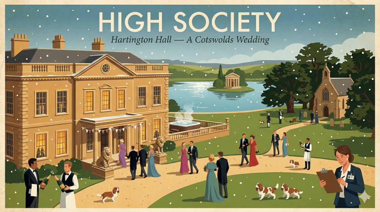 Events take place at yacht parties, aristocratic estates, and luxury gatherings, including the extravagant wedding at Hartington Hall.