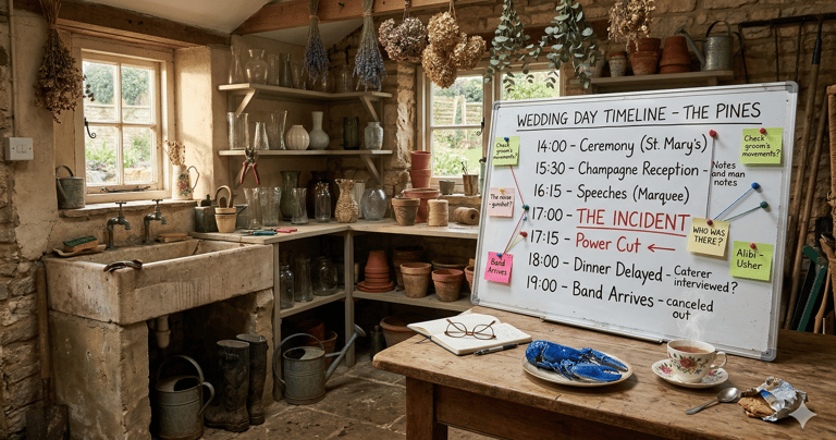 Murder Mystery meets Glass Onion at a society wedding.