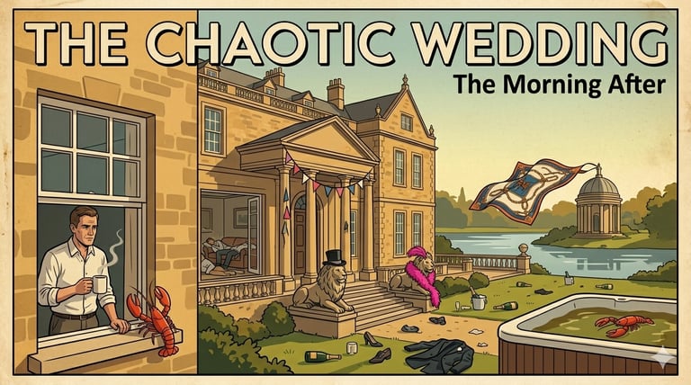 The story opens with the aftermath of a wild, chaotic wedding celebration that clearly hid deeper events.