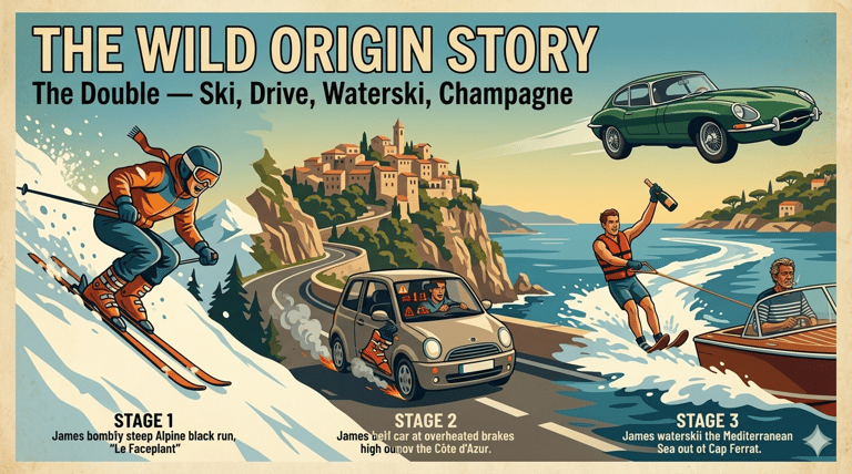 James’s infamous ski-drive-waterski challenge (“The Double”) establishes his reckless optimism and charm